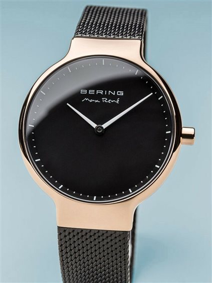 OROLOGIO TRENDY DISEGNATO PER BERING DALLO STILISTA MAX RENE' VETRO ZAFFIRO E CINTURINO INTERCAMBIABILE IN MAGLIA MILANO PVD NERO CON INNESTO A BAIONETTA