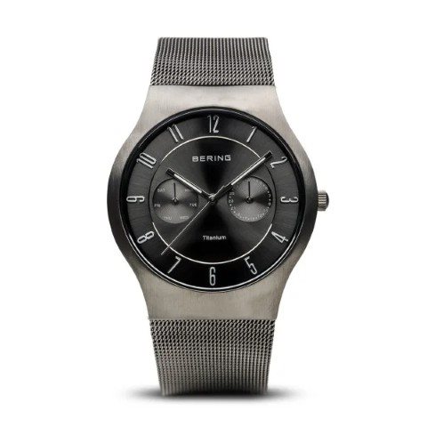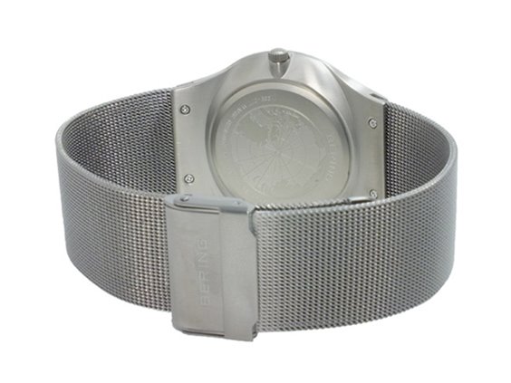 Cassa in acciaio diametro mm.39, vetro zaffiro, movimento al quarzo day-date, bracciale maglia Milano con fibbia regolabile, impermeabilità 5 atm., garanzia 3 anni.