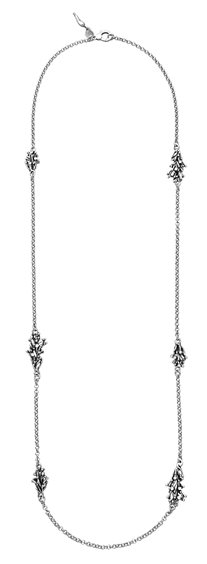 Collana Lunga Selene. Una raffinata collana in argento, ispirata al fascino misterioso della Luna, impreziosita da straordinari giochi di luce. Il contrasto tra l’argento brunito e le lavorazioni artigianali crea un profondo effetto chiaroscuro, esaltandone ombre e riflessi. Un gioiello intrigante e di classe. Gli eleganti elementi decorativi si alternano ad una catena rolò. La collana è lunga 91 cm. e viene realizzata interamente a mano in azienda.