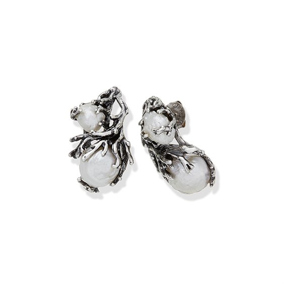 Orecchini in argento e perle naturali d'acqua dolce dai riflessi bianco opalescenti. Collezione Mari del Sud. peso della coppia orecchini: 20 gr. - Lunghezza 3,2 cm. - Chiusura con farfallina. Fatto a mano in Italia