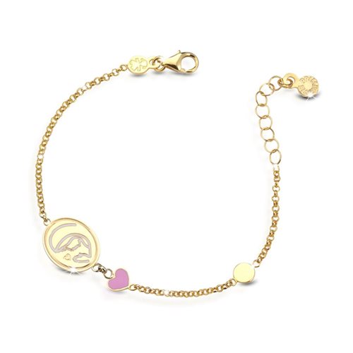 Bracciale Proteggimi in oro giallo con Madonnina e cuore smaltato. Lunghezza 14 - 16 cm