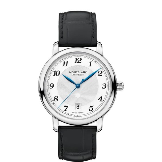 Per celebrare quest'anno il ventesimo anniversario della Montblanc Star Collection, la Maison reinventa la sua collezione iconica con orologi ispirati allo straordinario patrimonio della Manifattura Minerva, reinterpretando sia l'estetica che la tecnologia della collezione. Lo Star Legacy Automatic Date è l'orologio più puro della collezione. Presenta tutti i codici di design della linea, tra cui un raffinato quadrante con l'iconico motivo guilloché a stella scoppiettante Montblanc, lancette delle ore e dei minuti a forma di foglia, numeri arabi in stile Breguet ridisegnati che ricordano gli storici orologi da tasca Minerva, un filet sauté (linee guilloché su e giù), una minuteria ferroviaria unica nel suo genere e una lancetta dei secondi con l'emblema Montblanc sulla punta. L'orologio è alloggiato in una cassa in acciaio inossidabile di 39 mm, presenta un quadrante bianco-argento ed è dotato di un cinturino in pelle di alligatore nero realizzato dalla Montblanc Pelletteria di Firenze, Italia.