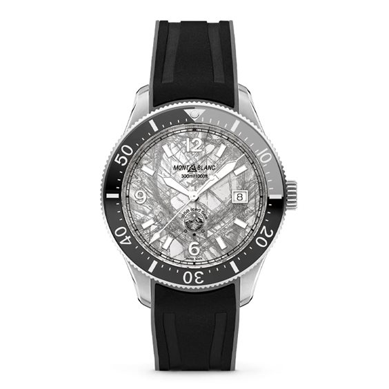 Il Montblanc 1858 Iced Sea Automatic Date con il suo quadrante grigio con motivo “ghiacciaio” dà l’impressione di guardare nelle profondità di un ghiacciaio ricco di minerali accumulatisi per millenni. Ispirata al Mer de Glace, questa texture glaciale è stata ottenuta utilizzando una tecnica ancestrale quasi dimenticata chiamata gratté-boisé. Il segnatempo da 41 mm presenta un cinturino in caucciù nero intercambiabile con profilatura grigia, che può essere sostituito in modo facile e veloce con un bracciale in acciaio pregiato senza bisogno di ritornare in boutique o utilizzare alcuno strumento. L’orologio è altresì regolabile al polso quando lo si indossa durante le immersioni subacquee. Il segnatempo è conforme alla normativa ISO 6425 per le immersioni subacquee, è impermeabile fino a 300 metri e presenta indicatori luminescenti che consentono la lettura anche in caso di scarsa illuminazione.