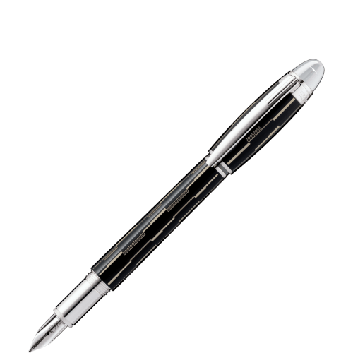 Star Walker Black Mystery, la superficie dall'innovativa incisione laser con clip dal design caratteristico. Pennino in oro 14 kt finitura rodio lavorato a mano.