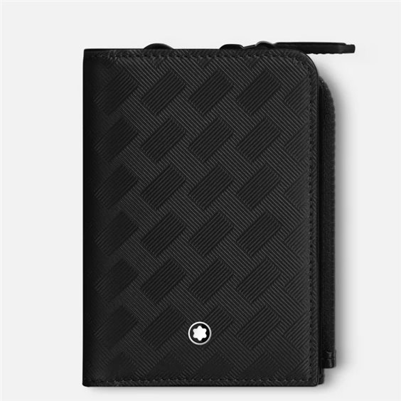 Porta carte di credito a 3 scomparti Montblanc Extreme 3.0, tasca con cerniera Il porta carte Montblanc Extreme 3.0 presenta 3 aperture per carte di credito e una pratica tasca con cerniera. La pelle bovina pieno fiore goffrata con motivo Montblanc Extreme 3.0 e i dettagli in metallo nero offrono uno stile inconfondibile. Grazie a un anello, è possibile agganciare il porta carte a un gancio o a un laccetto da collo per avere a portata di mano gli effetti essenziali. Laccetto da collo venduto separatamente. DIMENSIONI 85 20 115 mm