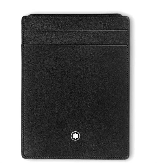 Il porta carte Meisterstück è realizzato in pelle nera con esclusivo lucido Montblanc. Piccolo ma funzionale, ha quattro aperture per carte di credito, tre tasche extra e una tasca trasparente per documento d’identità amovibile per trasportare documenti personali. Un compagno utile per la vita quotidiana.