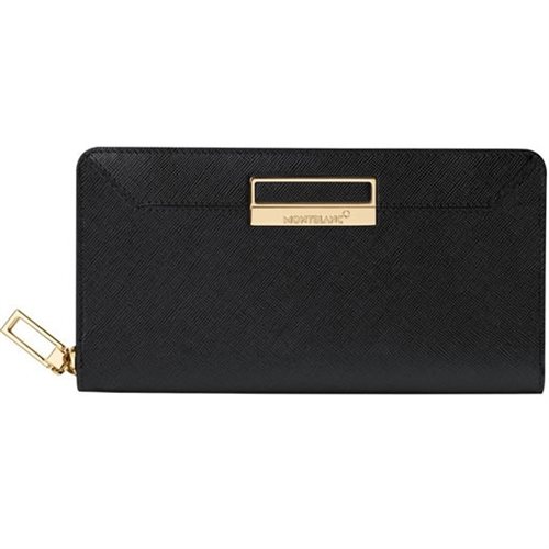 Portafoglio Montblanc collezione 'Sartorial Lady' in pelle di vitello. Chiusura con zip 8 tasche per carte di credito 3 scomparti per banconote 2 tasche extra 1 tasca chiusura con zip Rifiniture laminate oro giallo
