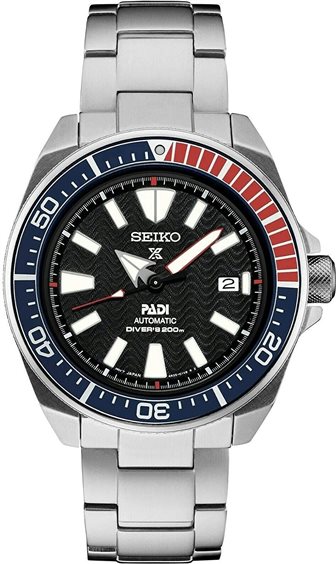 OROLOGIO SEIKO PROSPEX DIVER PADI SAMURAI - SPECIAL EDITION - AUTOMATICO - MOVIMENTO: automatico Seiko Cal. 4R35 - RISERVA DI CARICA: 41 ore - CASSA: in acciaio - QUADRANTE: nero con onde - indici e lancette Lumibrite - LUNETTA : girevole unilaterale - rivestimento in carburo di titanio rosso/blu - FONDELLO: avvitato - BRACCIALE: in acciaio con chiusura deployante di sicurezza - VETRO: in Hardlex - FUNZIONI: 3 sfere, Data, Ricarica manuale possibile - IMPERMEABILITA: 200M - GARANZIA UFFICIALE 24 mesi