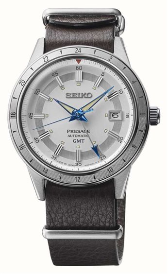 La nuova collezione Presage Style 60's riprende le caratteristiche del cronografo Crown con un vetro a forma di scatola, indici sfaccettati e lancette dalle linee decise. Un design intriso di una sensazione di morbidezza che rivela un look vintage anni '60. Lo spazio circolare interno del quadrante e la superficie esterna con gli indici sono caratterizzati da diverse tecniche di finitura, che migliorano la leggibilità e creano una calda atmosfera vintage con espressioni diverse a seconda dell'angolo di osservazione. L'SSK015J1 è dotato di un movimento automatico GMT 4R34 e di un datario a finestrella a ore 3.