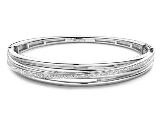 Bracciale rigido con fascia trasversale arricchita da un binario di cubic zirconia