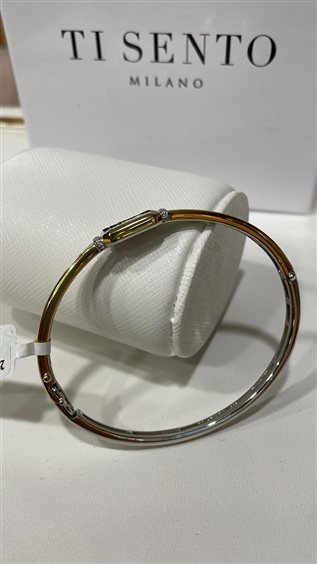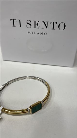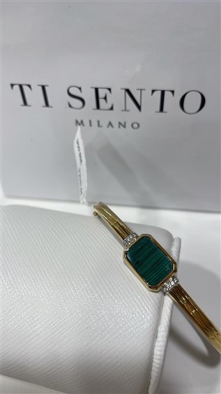 BRACCIALE TI SENTO MILANO DONNA IN ARGENTO RIGIDO PLACCATO ORO GIALLO CON PIETRA CENTRALE MALAGHITE VERDE.