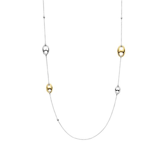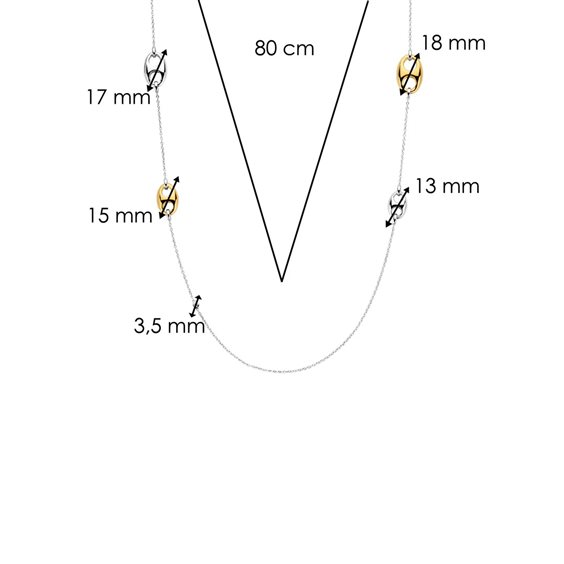 Sfoggia un'eleganza senza tempo con questa collana a catena in argento a forma di chicco di caffè TI SENTO 34063ZY/80. Realizzata in argento sterling 925 e placcata in platino per una brillantezza duratura, questa collana presenta una serie accattivante di forme di chicco di caffè, che si alternano tra placcatura in argento e oro giallo. Ogni chicco è meticolosamente realizzato, creando un effetto davvero accattivante. Questa collana è una testimonianza dell'arte della gioielleria raffinata, offrendo un'armoniosa miscela di tradizione e design contemporaneo. Il chicco di caffè, un simbolo senza tempo, aggiunge un tocco di stravaganza e raffinatezza a qualsiasi outfit. Esalta il tuo look quotidiano con questo affascinante pezzo. Indossalo lungo per una dichiarazione minimalista o raddoppialo per un effetto più audace e stratificato. Questa collana è davvero versatile, si adatta al tuo stile e al tuo umore. Realizzata con cura per le pelli sensibili, questa collana senza nichel e ipoallergenica assicura comfort e qualità duraturi.
