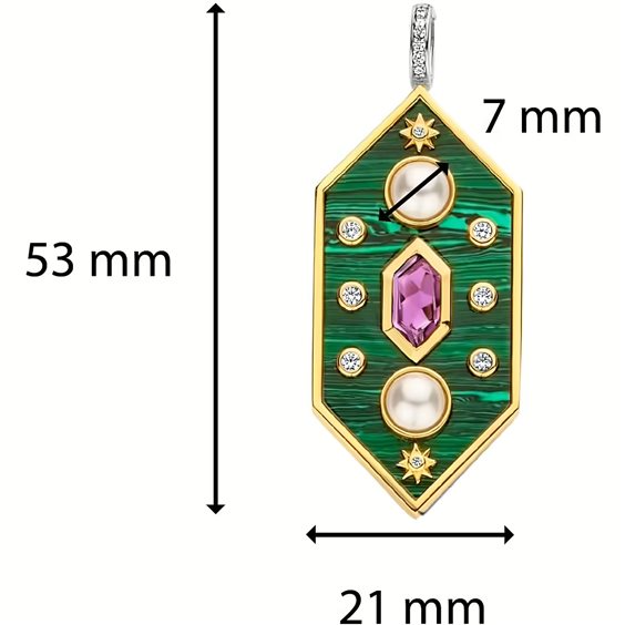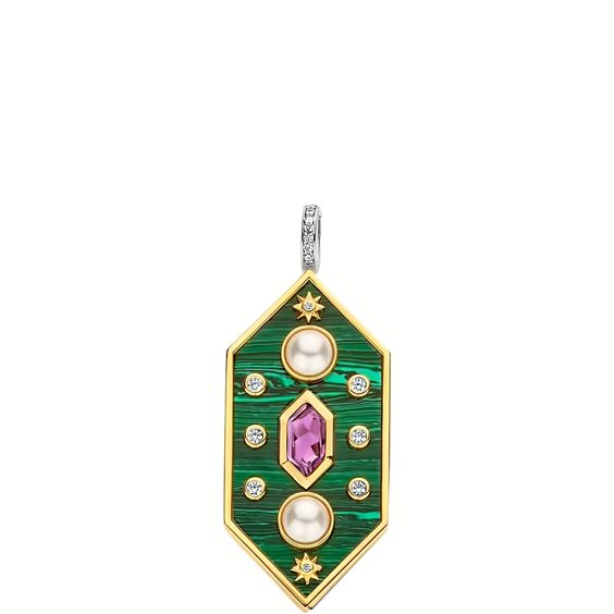Pendente da donna di Ti Sento Milano. Gioiello realizzato in argento sterling color oro e cristallo sintetico. Il colore di questo pendente è Malachite.