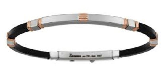 Bracciale in gomma, con sezione principale in acciaio 316 ipoallergenico e oro 18k gr.90