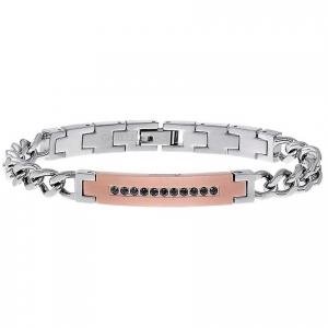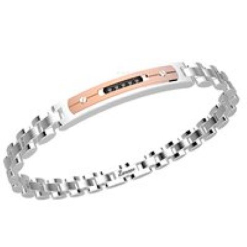 Bracciale da uomo Zancan collezione Hi Teck. Gioiello in acciaio 316L con spinelli neri. Bracciale costituito da Acciaio 316L medicale con trattamento Pvd di colore oro rosa. Misura 21 Cm. La Chiusura È A Clip.